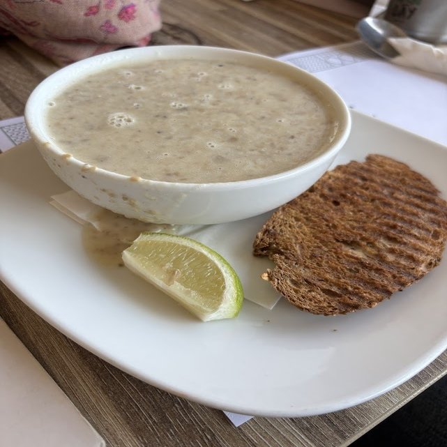 筆者のおすすめはマッシュルームスープです。スープを注文するとパンもついてきてお得!疲れた胃に沁みわたる一品です。