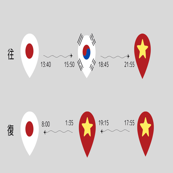 最初、日本から韓国までは無事に行けたものの、韓国からベトナムに行く時にまさかの大吹雪に見舞われなかなか飛び立つことができませんでした。