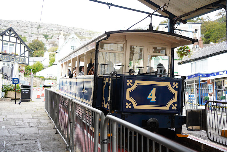 メインストリートを道なりに進んだ先にトラム乗り場が見えてきます。トラムに乗って、スランディドノの一番の見どころ、羊がたくさんいる丘「グレート・オーム」へ向かいましょう!