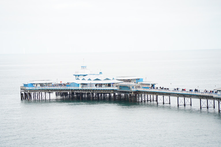 ケーブルカーの降り場からすぐ近くにあるのが、スランディドノの港「Llandudno Pier」です。長い桟橋の両側にはレストランやカフェ、子ども向けの小さな遊園地やゲームセンター、ギフトショップが集まっており、楽し気な雰囲気が漂っています。