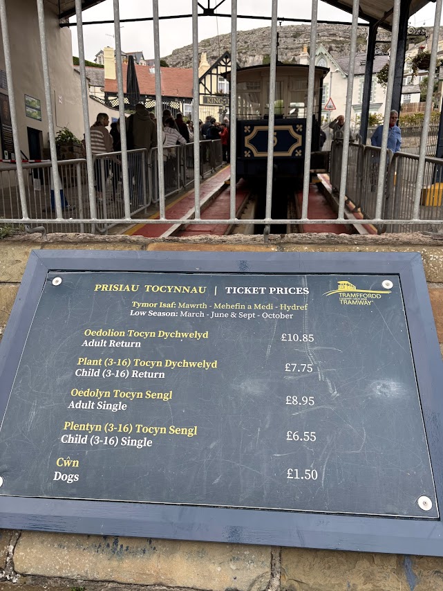 ケーブルカーは大人往復£15(約3000円)、片道£14.5(約2900円)と少しお高めですが、空から広大なスランディドノの風景を眺める絶好のチャンスです。