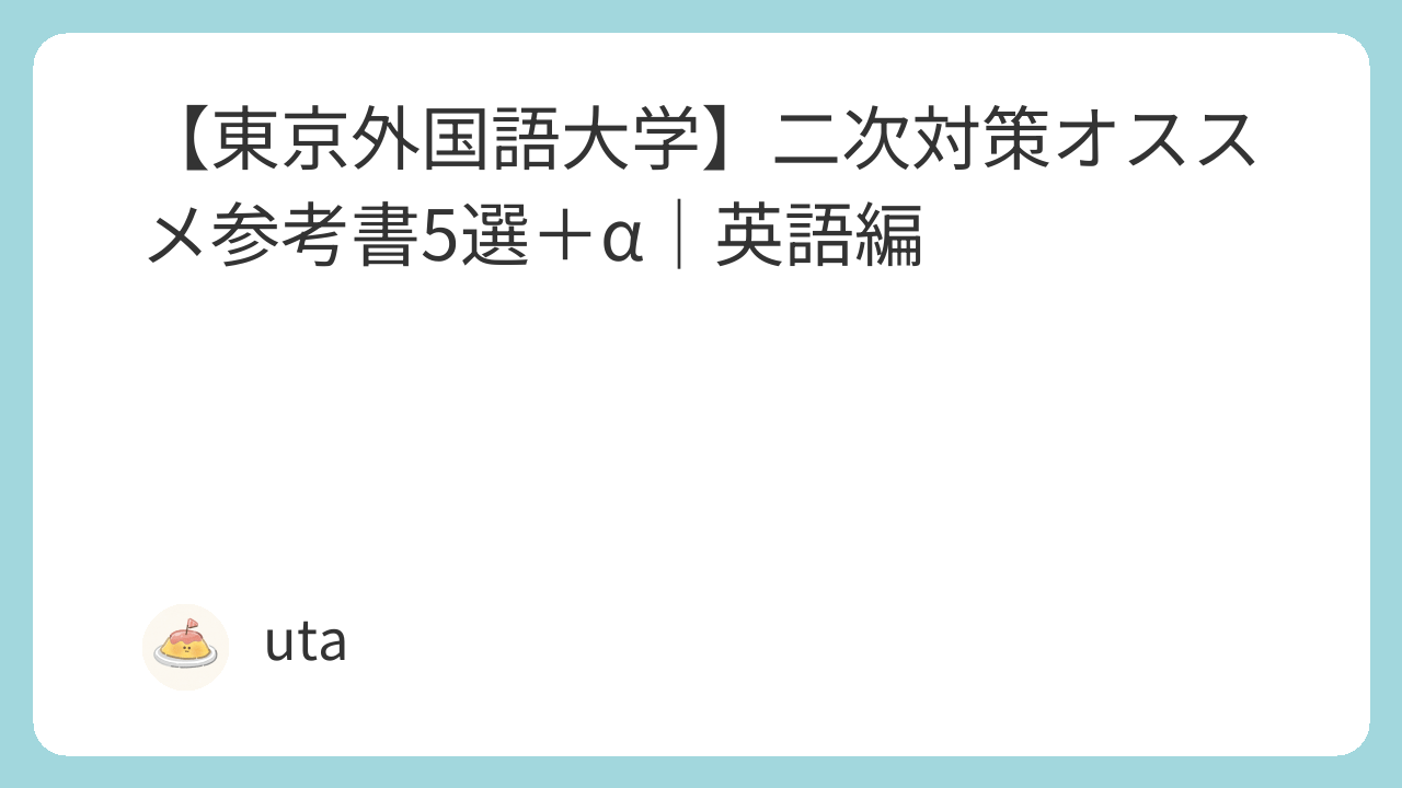 【東京外国語大学】二次対策オススメ参考書5選+α|英語編