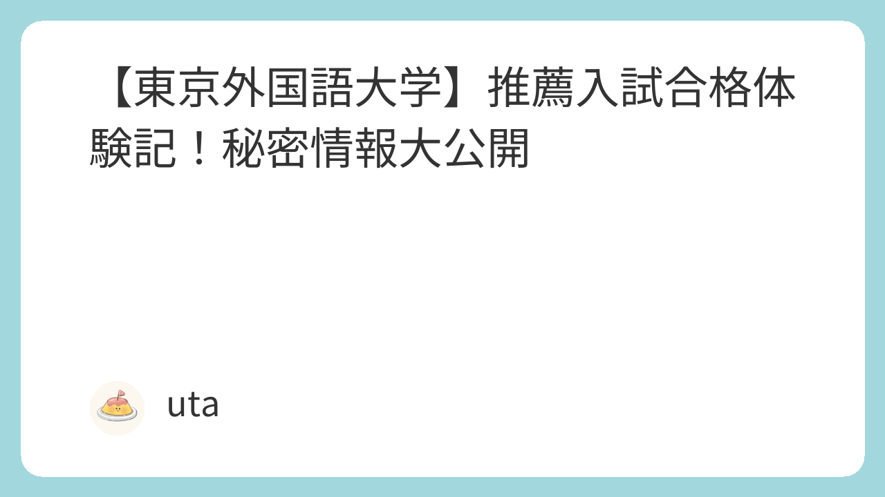 以上、東京外国語大学・言語文化学部・英語科の推薦合格体験記でした。